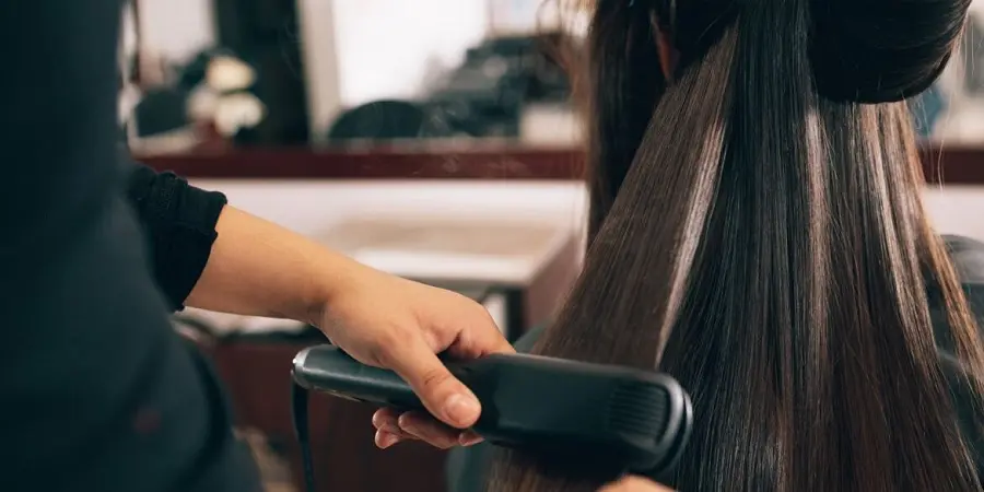 – Après un temps de pose de 10 à 45 minutes, le coiffeur rince et sèche les cheveux. Chaque mèche sera ensuite lissée avec des plaques chauffantes en céramique afin d’activer le processus de lissage et d’optimiser la pénétration du produit ;