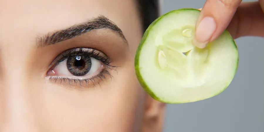 Les légumes et spécialement le concombre sont particulièrement efficaces pour rafraîchir le regard. Grâce à ses propriétés anti-inflammatoires, il décongestionne les yeux et prévient la formation des poches. Pour profiter de ses vertus, il suffit de disposer des rondelles de concombre au réfrigérateur et de les placer au niveau des yeux pendant 25 minutes.
